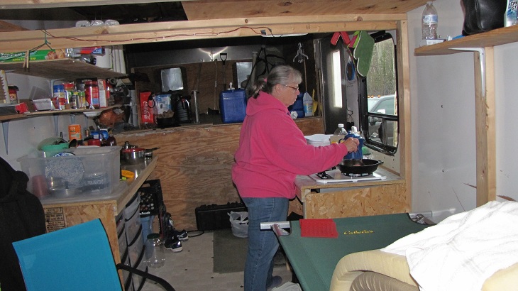 A view in side our kitchen, Notice, this year we have a floor !!!