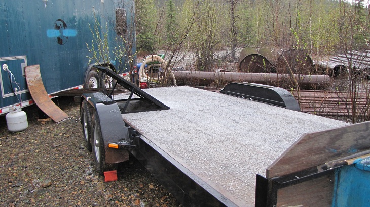 Hail covered everything one day. Those are the solar panels used to charge the battery we use for lights in the trailer