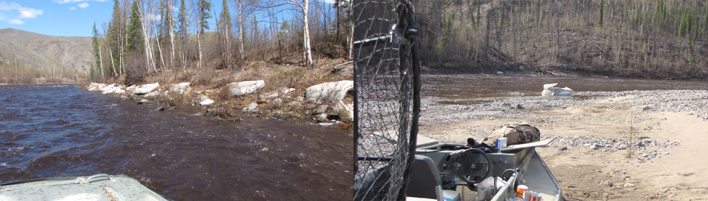 On the first trip on the river up to our North fork camp site I saw many ice burgs on shore