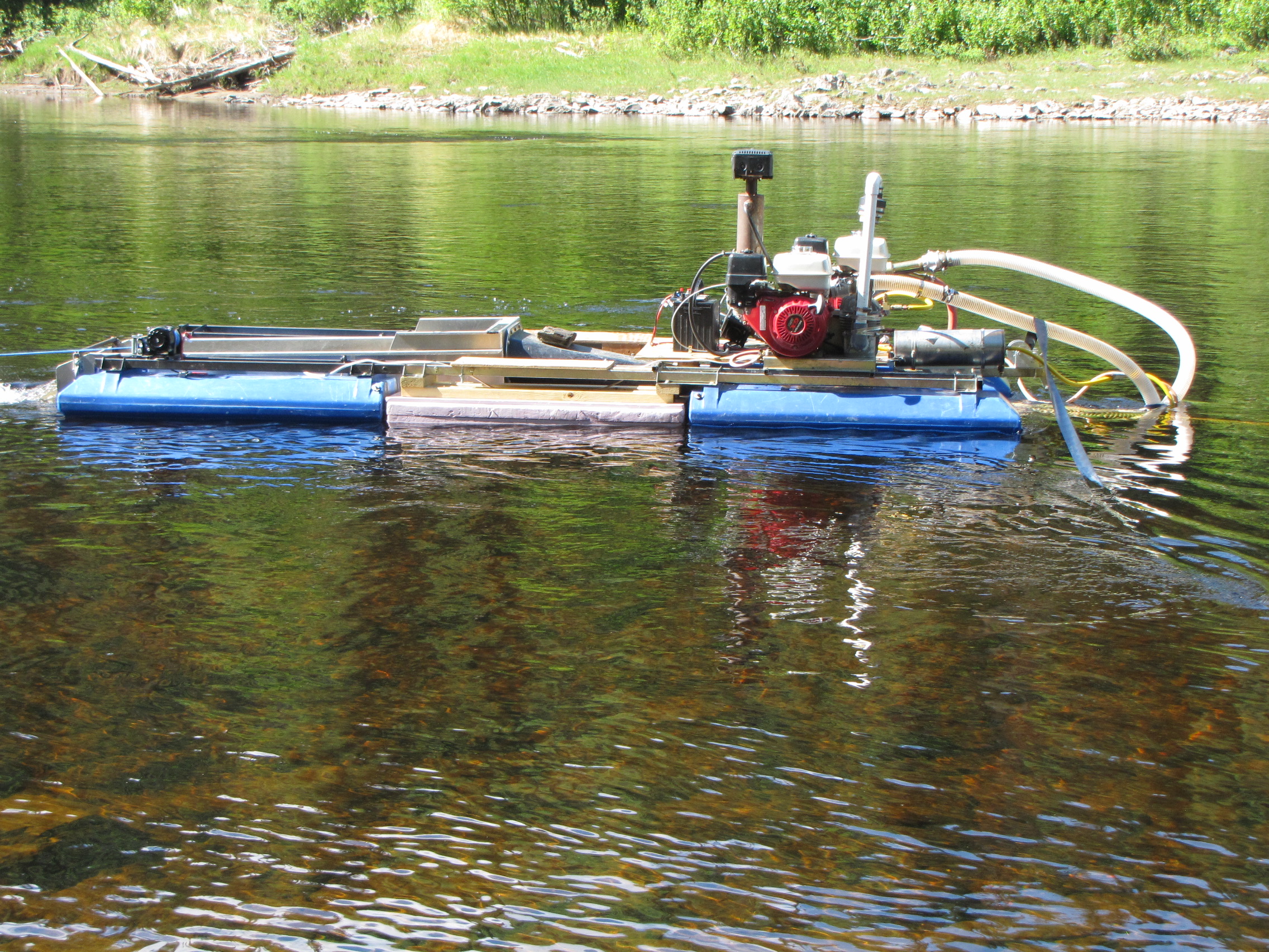 A video of an 8 inch dredge with a sump and two side slucies that were added to it.