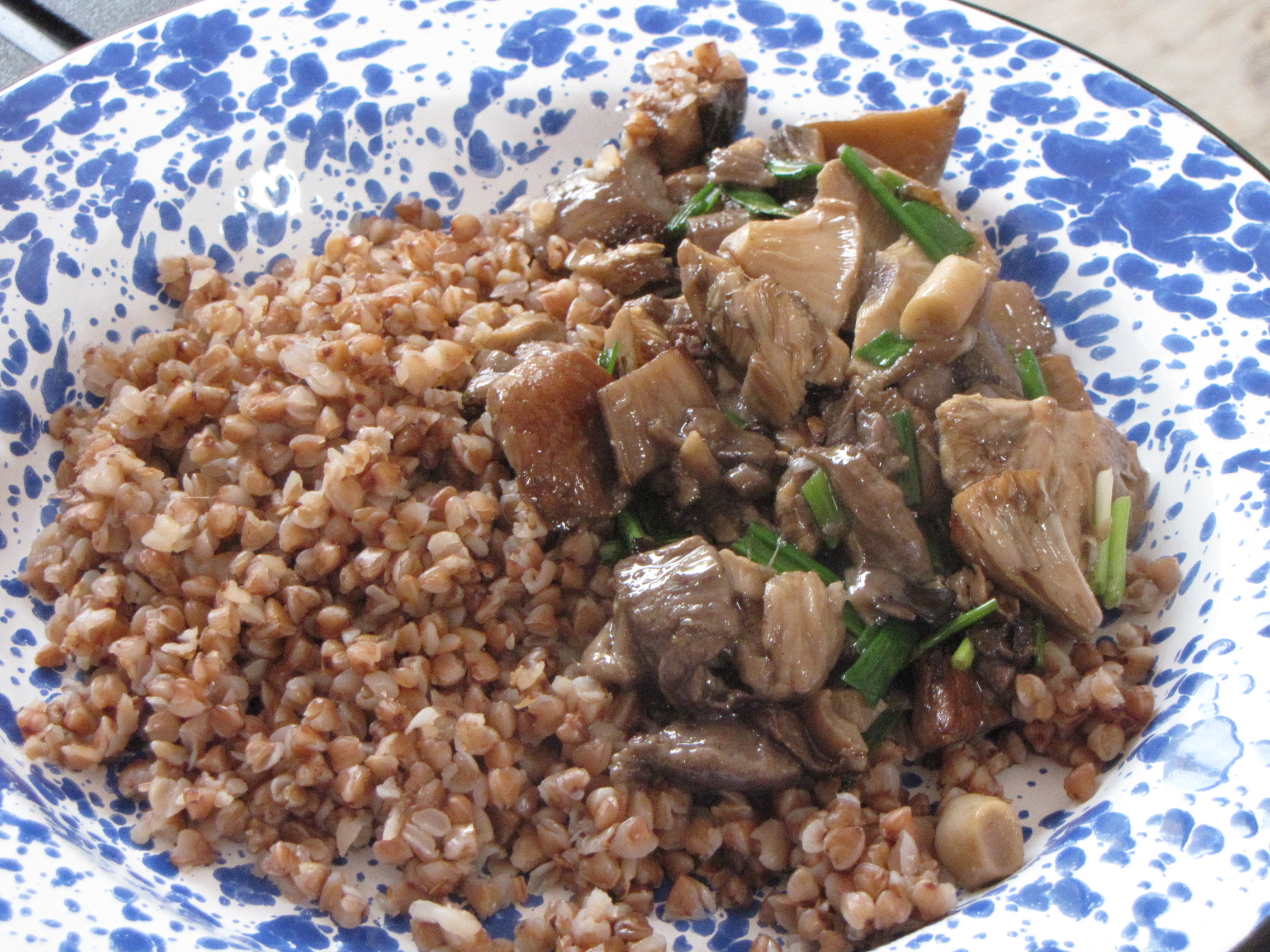 Seems he often flys over to paris just to have a $500.00 a plate of these. the plate is buckwheat and mushrooms with onions.