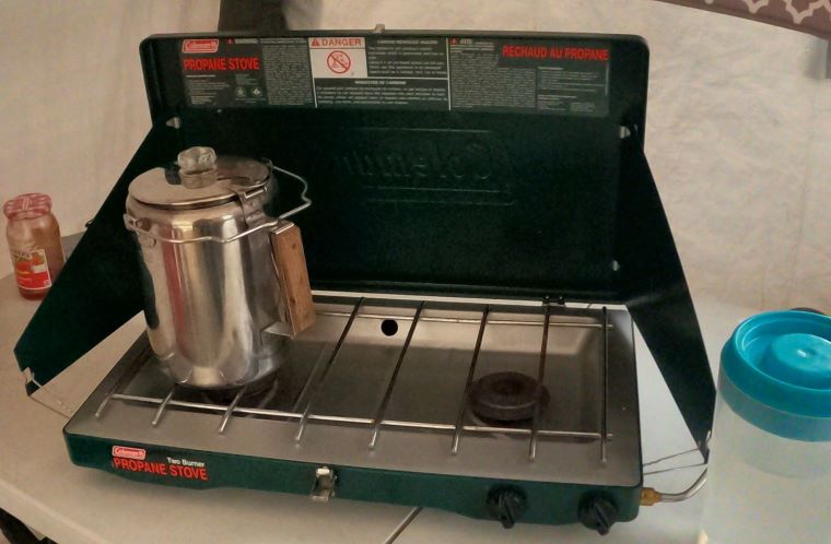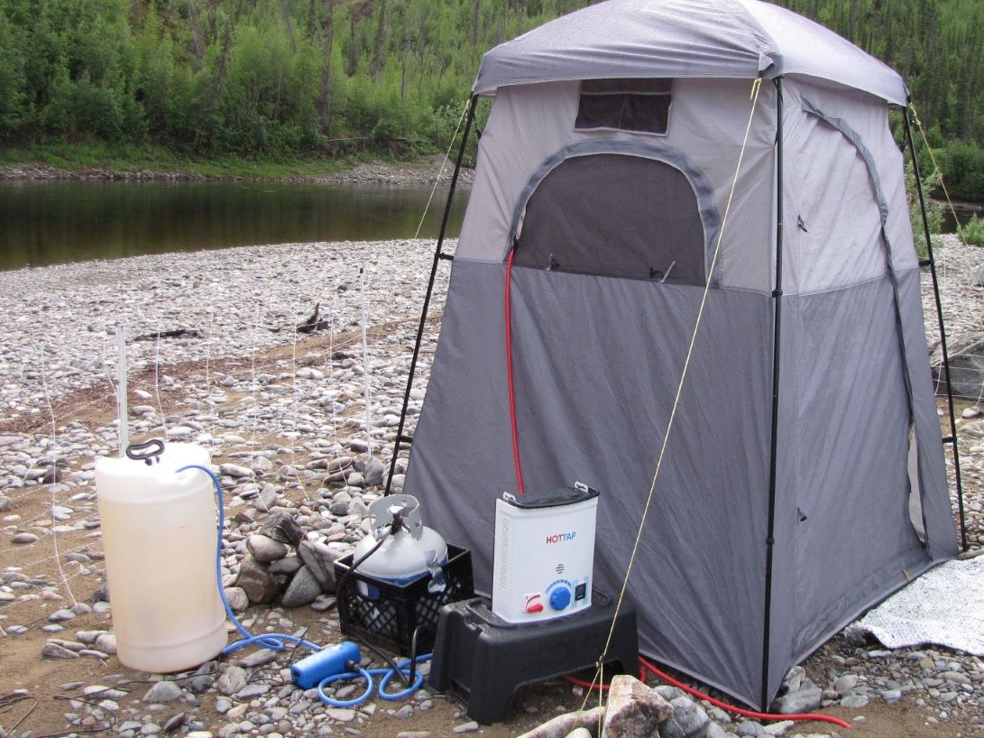 - Water heater for shower and a tent for taking showers (Used when we are on the river)