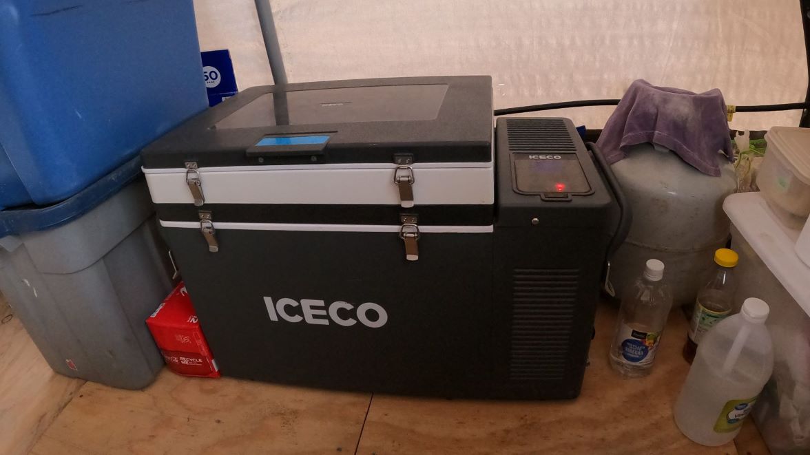 Ice co fridge/freezer. It runs on 12 volts and will keep food cool. Temp can be set from 40 to 4 degrees